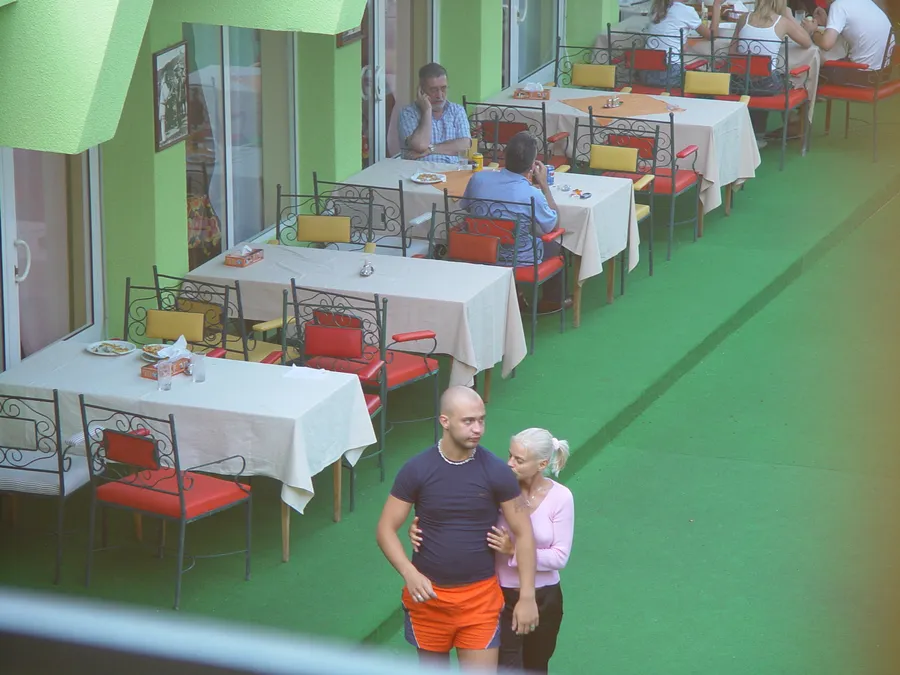 La o terasă de litoral care urlă „ieftineală de sezon”, mese cu fețe de masă obosite, scaune de fier vopsit și un verde care-ți atacă retina, stau Jojo și Alexandru Anghel, într-un moment care nu mai are nimic din febra începutului. El, pictor boem, absolvent de Arte Plastice, genul de artist pentru care merge perfect și sărăcia asumată: bermude, șlapi, ghiuluri pe degete și aerul de „lasă, merge și-așa”, ca un creator care trăiește mai mult din stare decât din confort.