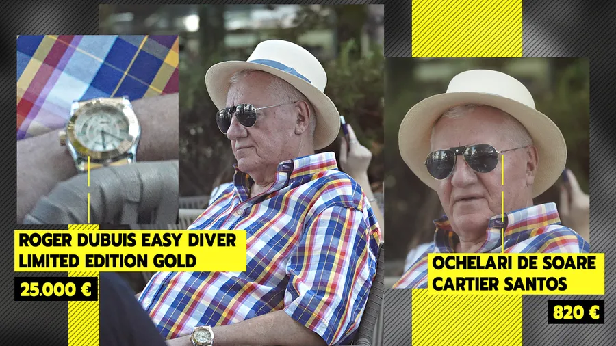 Dumitru Dragomir a arătat, însă, că-și merită pe deplin porecla de Corleone. Ajuns la 76 de ani, fostul șef al LPF este un șmecher „calificat”. În local, s-a prezentat un superb Roger Dubuis Easy Diver Limited Edition Gold, ceas al cărui preț sare de 25.000 de euro. Asta nu este, însă, tot. O astfel de bijuterie trebuia asortată pe măsură.
