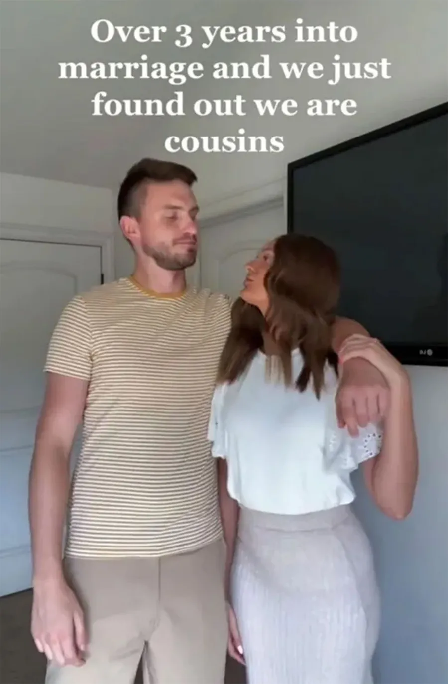 „La trei ani de căsătorie, tocmai am aflat că suntem veri”, se arată în clipul postat pe Tik Tok.