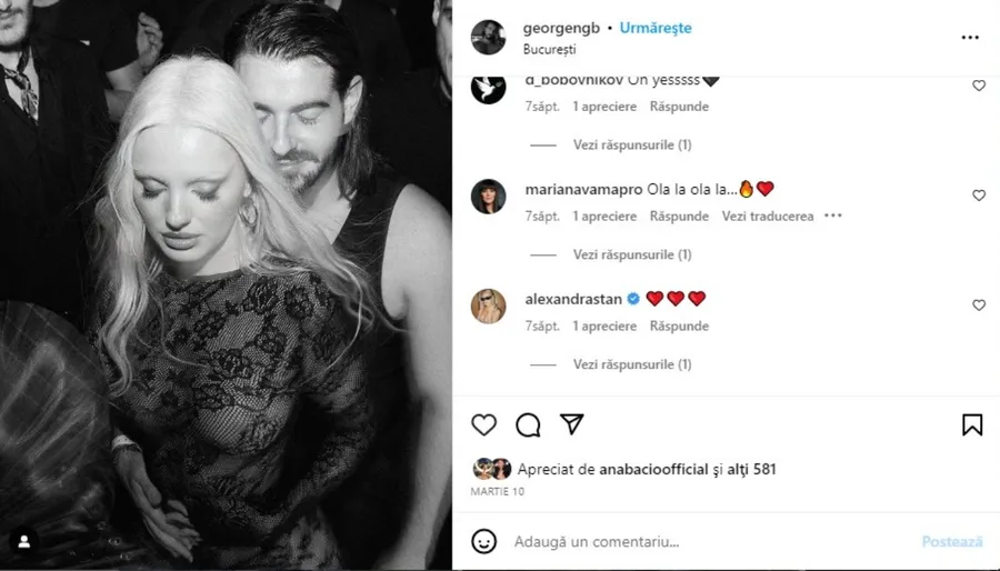 În urmă cu șapte săptămâni, George Negrișan a postat pe Instagram o imagine în care o ține în brațe pe Alexandra Stan, cu descrierea: We spread LOVE! (Noi răspândim iubire, trag. eng, n.r.). Vedeta a reacționat imediat, lăsându-i un comentariu cu trei inimioare.