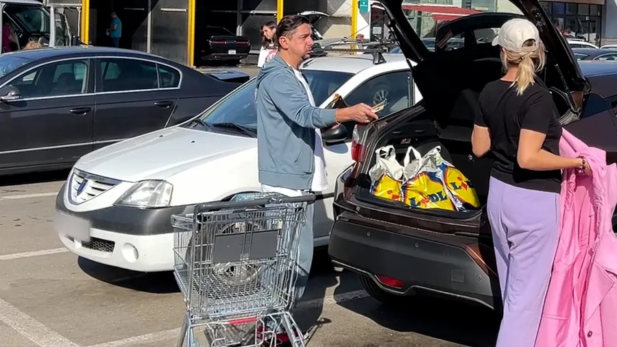 În ținute sport – Cosmin optând pentru un trening și o pereche de teniși, iar Eliza pentru un tricou, o pereche de pantaloni largi, adidași și șapcă – cei doi au luat-o la pas prin parcarea supermarketului.