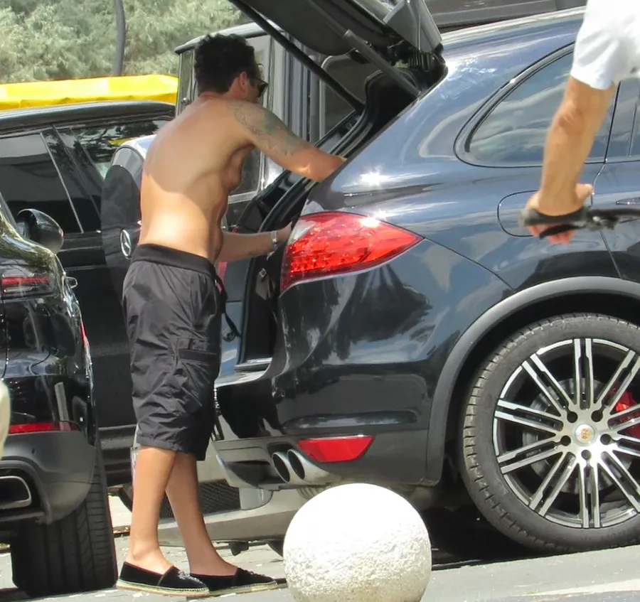După câteva minute petrecute în parcare, lângă mașină, timp în care a părut că s-au pus de acord cu noua destinație, Syda a decis să-și schimbe vestimentația. Așa că, fără prea mari menajamente, s-a dus la portbagaj, și, după ce a cotrobăit într-o valiză, fostul ginere al lui Traian Băsescu s-a schimbat în văzul tuturor. Fără a ascunde că este mândru de fizicul său, Syda și-a etalat ”mușchii” în parcarea din Mamaia.