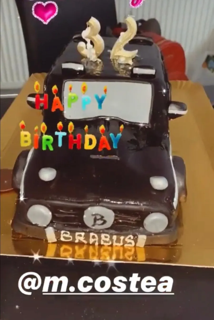 Fosta ”noră” a lui Vasile Turcu, Adelina Nica, a pregătit totul în cel mai mic detaliu. Și asta pentru că, la un moment dat, în sufragierie a apărut un tort cu totul special. Prăjitura aniversară a lui Mihai Costea a fost în formă de Mercedes Brabus. Fotbalistul a fost răsfățatul serii. Pe lângă tortul special, Mihai Costea a primit cadou și o pereche de Balenciaga, de care nu părea însă extrem de încântat.
