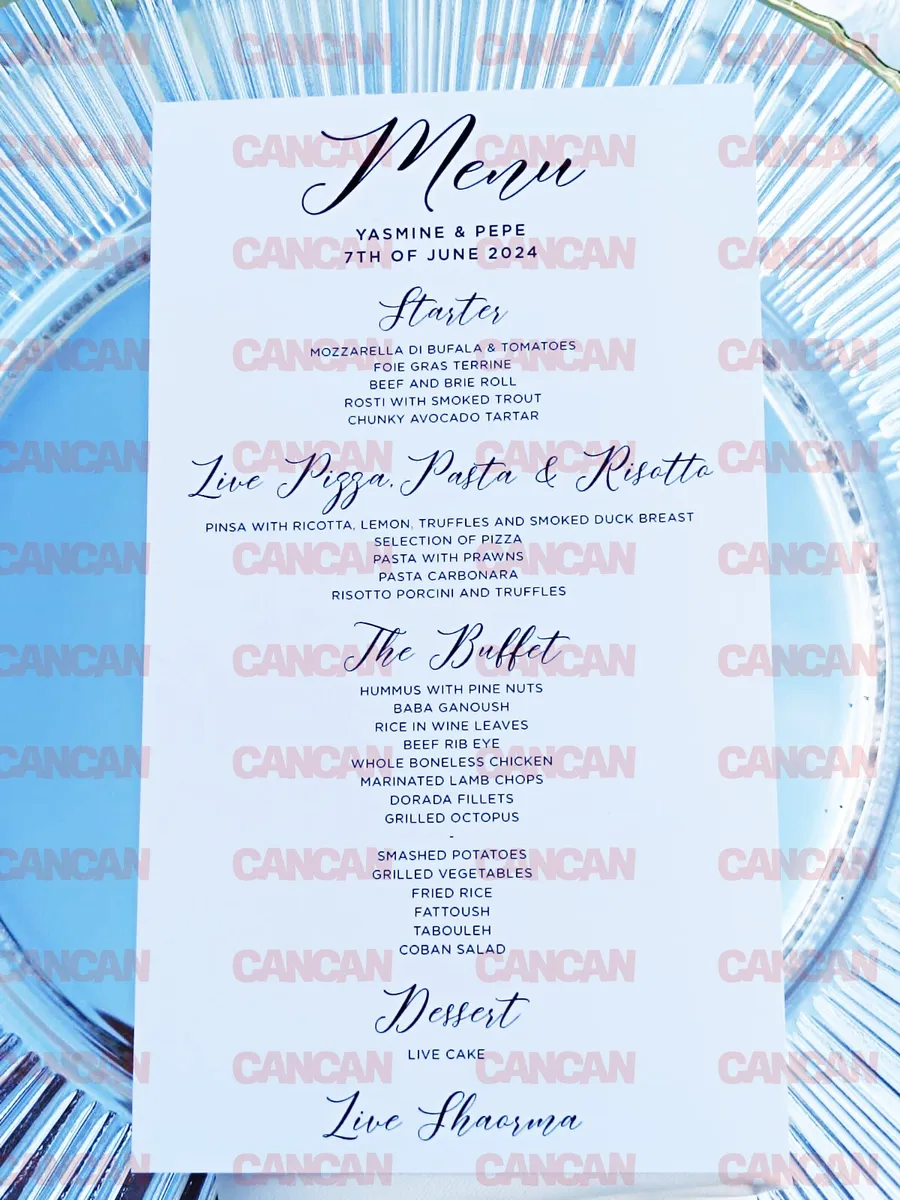 Meniul de la nunta lui Pepe și Yasmine/ sursă foto: CANCAN.RO