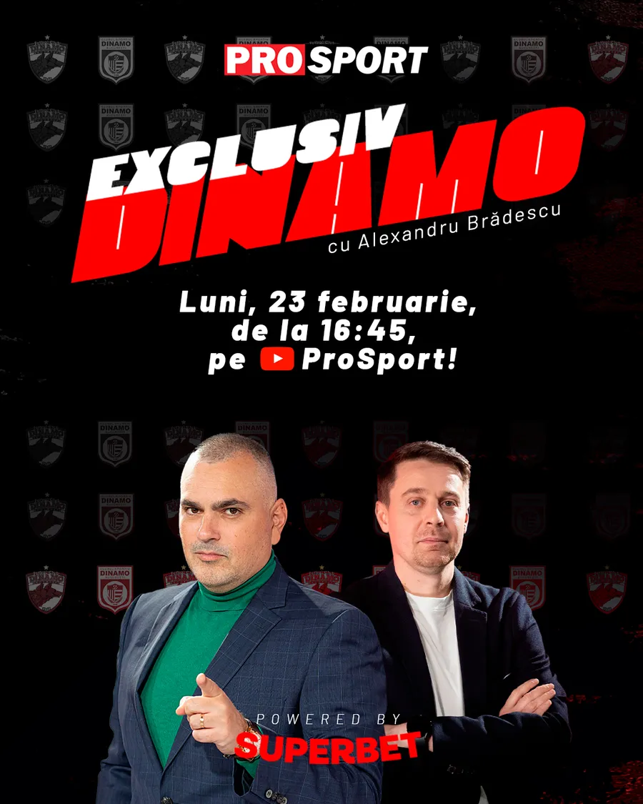 Azi, luni, de la 16.45, o nouă ediție „Exclusiv Dinamo”, show-ul ProSport dedicat „câinilor roșii”, în direct pe canalul de YouTube ProSport și pe Facebook ProSport.
