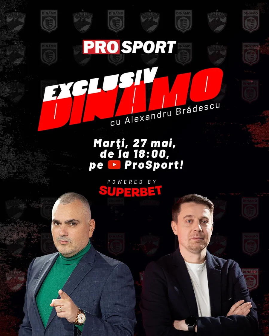 Azi, marți, de la 18.00, o nouă ediție „Exclusiv Dinamo”, show-ul ProSport dedicat „câinilor roșii”, în direct pe canalul de YouTube ProSport și pe Facebook ProSport.