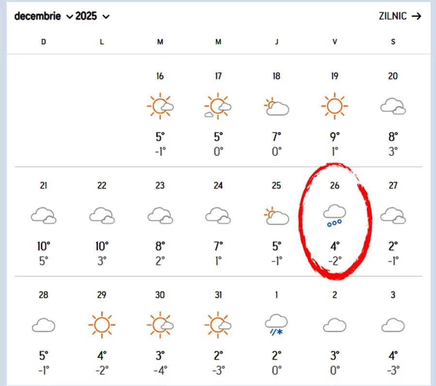 Răcirea se va face simțită treptat și ar putea continua inclusiv în intervalul dintre Crăciun și Anul Nou, când temperaturile ar urma să coboare sub mediile normale ale perioadei. Există semnale că acest regim mai rece ar putea persista și în primele zile ale noului an, marcând o schimbare clară față de vremea blândă din ultima perioadă.