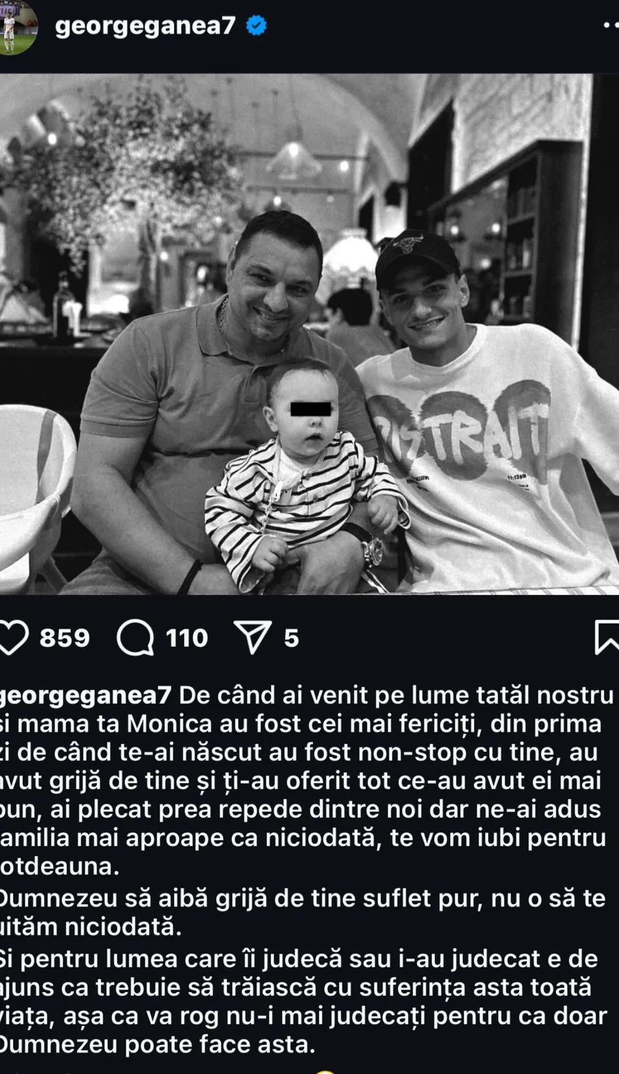 La o zi de la pierderea fratelui său mai mic, George Ganea, băiatul cel mare al lui Ionel Ganea, a făcut un apel public, rugând comunitatea online să nu îi mai judece părintele și să încerce să privească tragedia prin care trece familia sa cu empatie și compasiune.