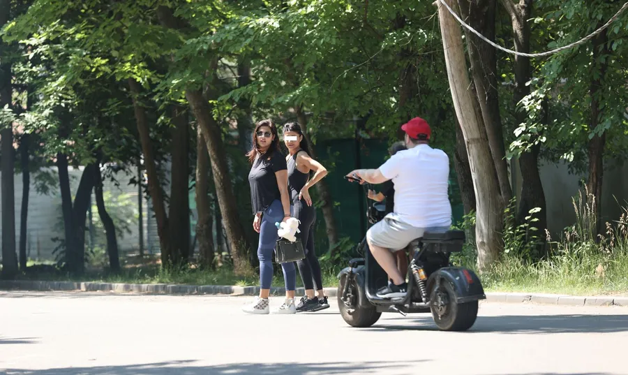 Florin Salam și micuța, pe scuter, le ajung din urmă pe Roxana Dobre și pe prietena ei (Foto: CANCAN.RO)