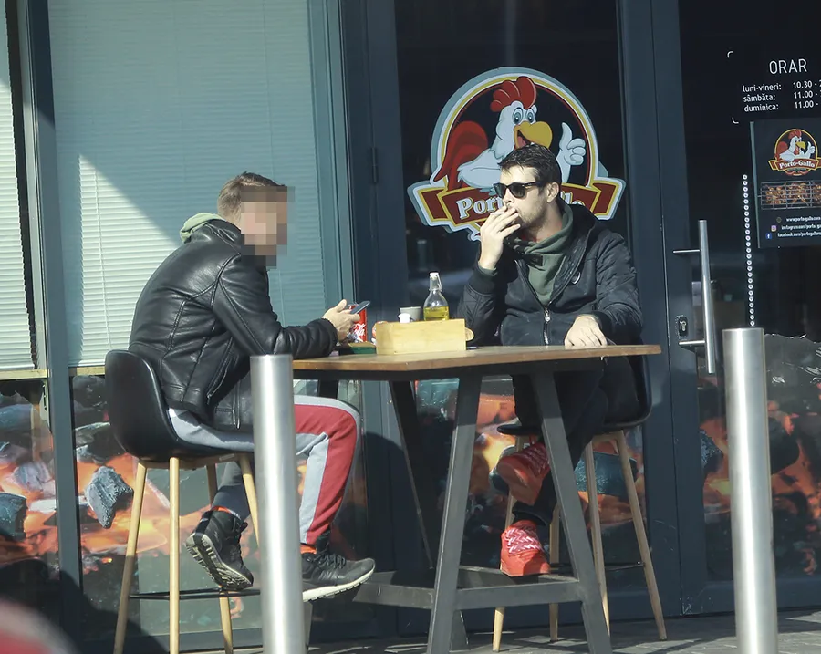 Pe lângă discuțiile „de băieți”, cei doi, Marius Elisei și amicul său, n-au ezitat să împartă frățește o doză de suc. Cu ochii acoperiți de o pereche de ochelari de soare – ”ca mafioții” – fostul soț al Oanei Roman a petrecut câteva momente în compania amicului său. După toate aparențele, cei doi tineri au avut parte de o repriză de discuții serioase.