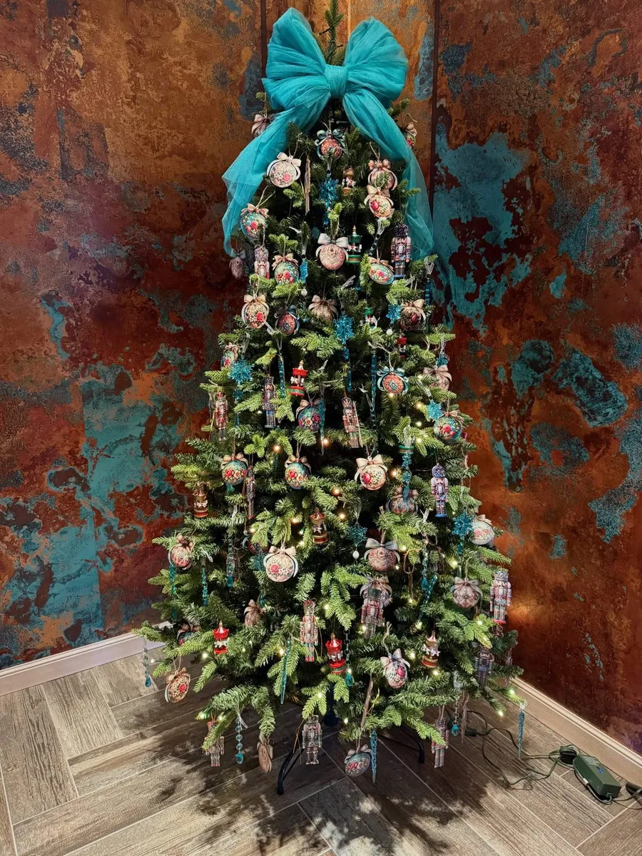 Pentru acest an, ea și familia ei au optat pentru decorațiuni în nuanțe de turcoaz, completate de globuri tradiționale și o fundă realizată acasă chiar de vedetă din tul. Încântată de rezultat, Gabriela Cristea a împărtășit imaginile festive cu urmăritorii ei de pe rețelele sociale.