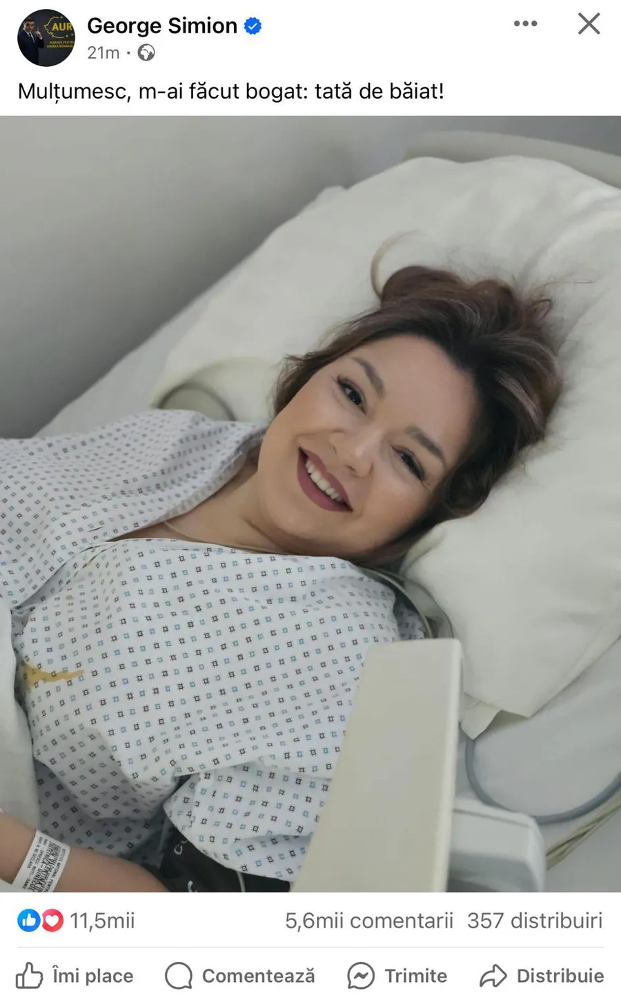 Este o zi mare pentru George Simion. Omul politic a devenit astăzi, 24 aprilie, pentru prima oară tătic. Ilinca, soția acestuia, a adus pe lume un băiețel perfect sănătos și este în culmea fericirii. Același sentiment îl împărtășește și George Simion, care a dat veștile cele mari și în mediul online.