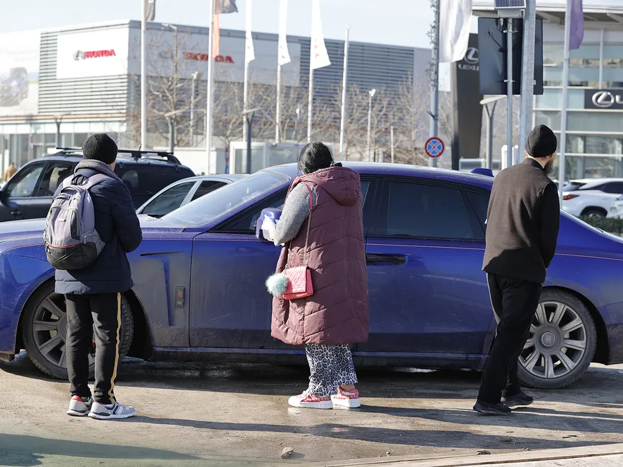 Doar că, odată cu el, au apărut rapid și „enoriașii de serviciu”. Nevoiașii au înconjurat Rolls-Royce-ul și au făcut coadă la ușa mașinii, cu speranța că nea Gigi va băga mâna adânc în buzunar, ca de obicei. Așteptarea a fost una tensionată și plină de speranță. O femeie scoate chiar și niște documente pentru a-l convinge pe acesta de situația ei.