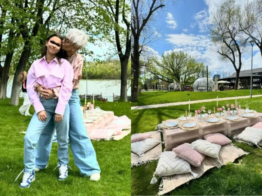 Împreună au ales ca petrecerea adolescentei să aibă loc în natură, în grădina unui restaurant – pe marginea lacului, acolo unde aproape orice ieșire devine o bucurie și o invitație la deconectare de la zgomotul, aglomerația și poluarea din oraș. Pentru că evenimentul a fost organizat într-un loc în natură, Giulia a ales ca decorul mesei festive să fie unul intim și confortabil – ca de picnic – o masă cu mai multe perne, veselă, lumânări, flori, toate în diferite nuanțe de roz și cream. Adolescenta a avut parte de o zi de neuitat alături de părinții ei și de cei mai buni prieteni ai lor.