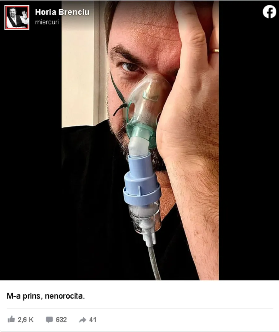 Pentru că este sezonul virozelor și al gripelor, Horia Brenciu nu a scăpat neatins de răceală. Recent, artistul le-a dezvăluit fanilor de pe rețelele de socializare prin ce trece. Chiar și cu masca de oxigen pe față, Brenciu nu a lăsat ca o stare de rău să-i anihileze simțul umorului. Deși vizibil afectat și slăbit, artistul a dezvăluit că: ”M-a prins, nenorocita”, a scris Horia Brenciu pe Facebook.