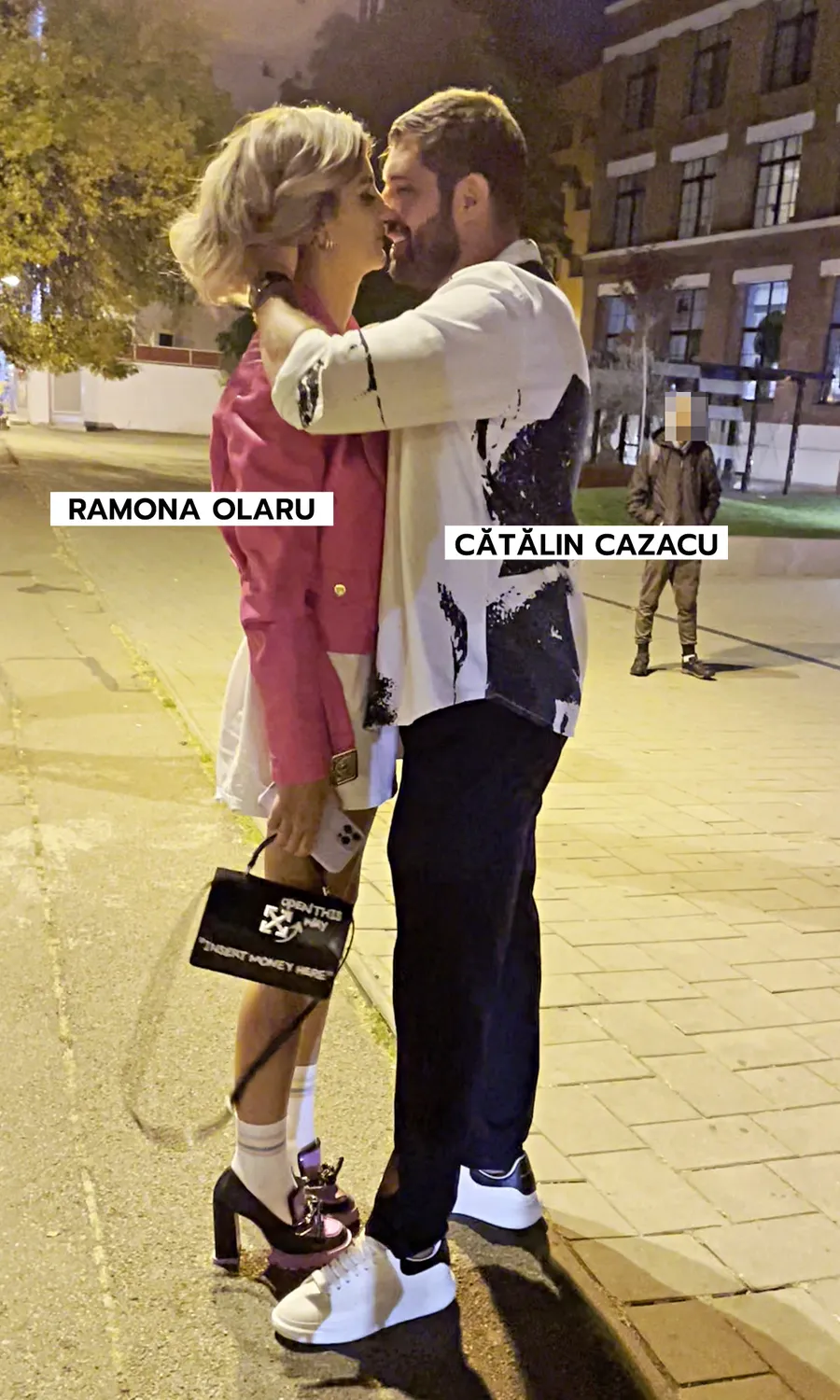 Cătălin și-a luat mândra și a condus-o înspre stradă, unde urma să vină Boltul. Dar până acolo… drum lung. ”Faimosul” a vrut să ”fericească” un copil cu mâna întinsă, dar Ramona i-a luat fața, a scos bancnota și i-a dat-o băiatului. Apoi, cei doi s-au ținut de șotii. Iar punctul culminant avea să fie atunci când Cătălin Cazacu și-a cuprins iubita și a sărutat-o prelung. Ea s-a prins în jocul buzelor și i-a întors ”ventuza”.