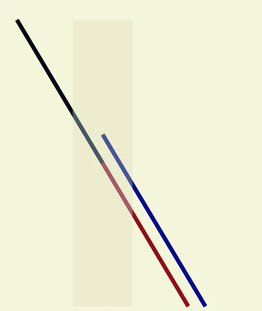 Iluzia optică Poggendorff: Care linie o continuă pe cea neagră – cea albastră sau cea roșie?