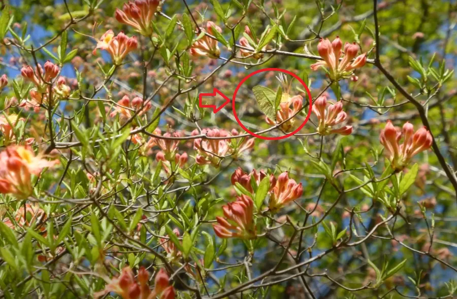 De data aceasta, avem în atenție o iluzie optică de Valentine’s Day. Unde se află fluturele în imaginea de mai sus? Imaginea înfățișează un tablou natural, cu flori, frunze și crengi, într-o zi însorită. Lumina naturală pune în valoare culorile pastelate ale elementelor din imagine, făcând descoperirea fluturelui mai dificilă. Se pot observa crenguțele unui arbore, petalele galbene-roșiatice ale florilor și, de altfel, frunze în diverse nuanțe de verde. Iar acest aspect îngreunează, încă o dată, aflarea zonei în care stă insecta.