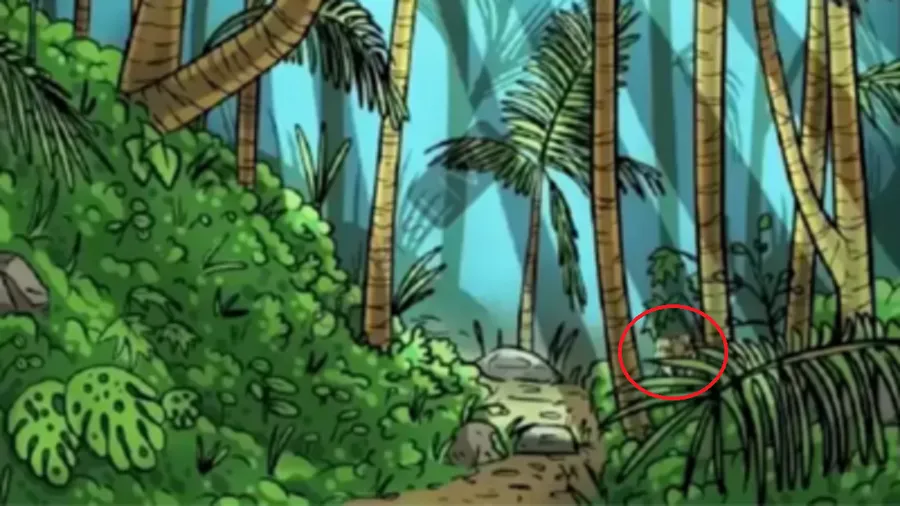 În imaginea de mai sus, care formează un tablou natural, se ascunde un tigru. Pentru un asemenea test vizual este nevoie de o atenție sporită la detalii. Nuanțele sunt foarte apropiate de cele ale animalului sălbatic, motiv pentru care privitorul ar putea fi indus în eroare.