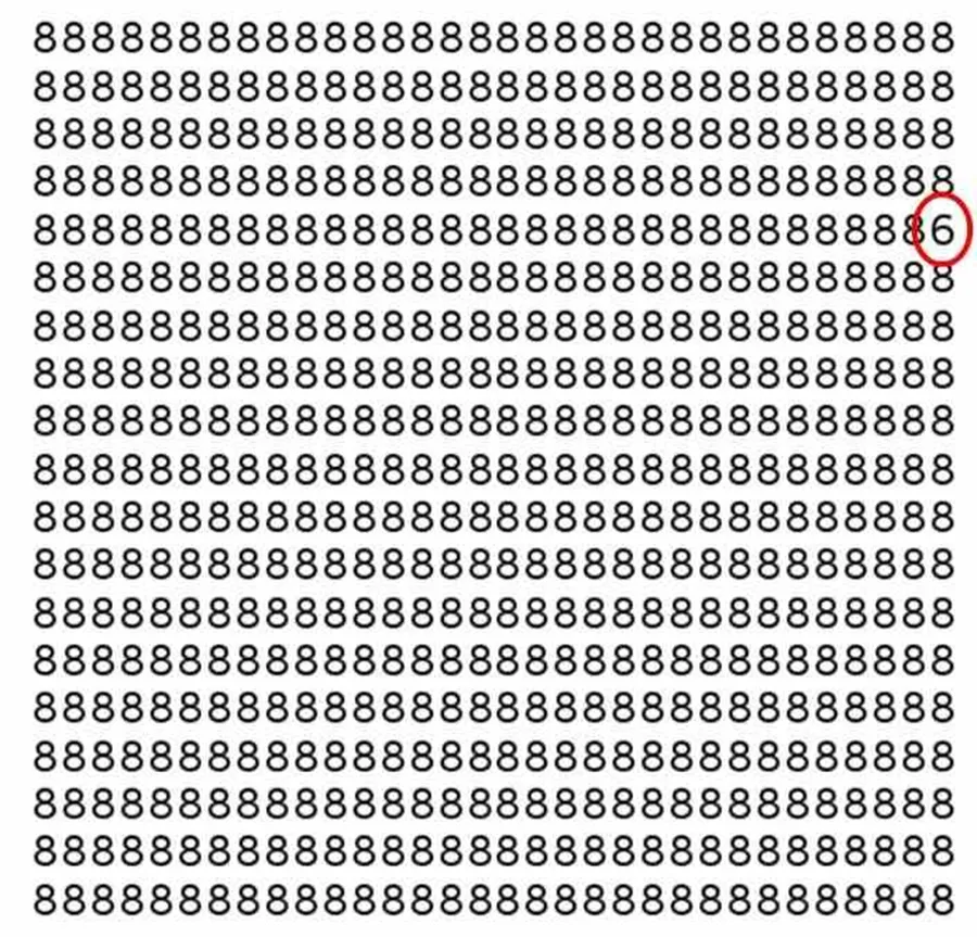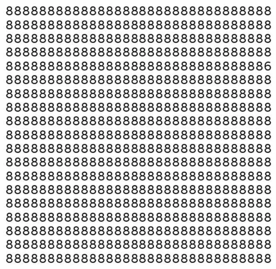 REZOLVARE: Cele 12 secunde au expirat. Ai fost suficient de atent încât să găsești cifra 6 ascunsă în această mare de cifre 8? Dacă încă mai cauți, vezi răspunsul în imaginea de mai jos!