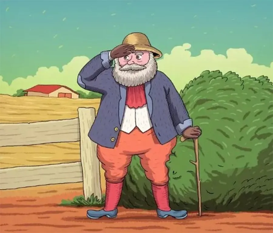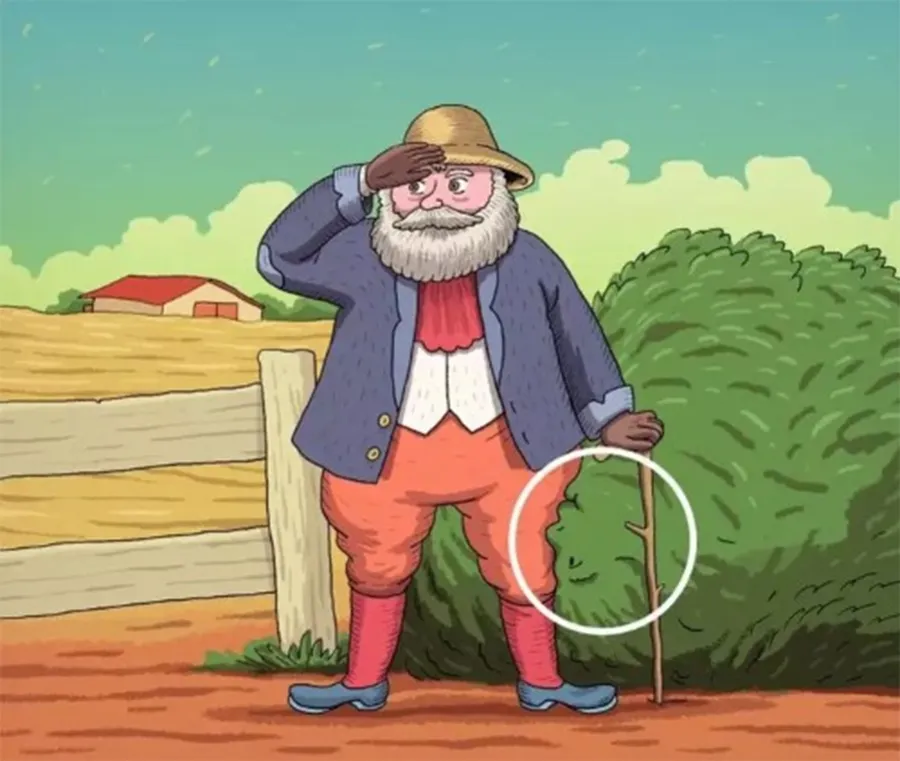 Imaginea aparent simplă îl prezintă pe un bătrân așezat lângă un tufiș. Nimic neobișnuit la prima vedere. Este important de precizat faptul că femeia ascunsă în imagine nu este deloc ușor de observat. Detaliile sunt lucrate cu atâta atenție și finețe încât majoritatea oamenilor privesc fără să-și dea seama că este ceva… diferit.