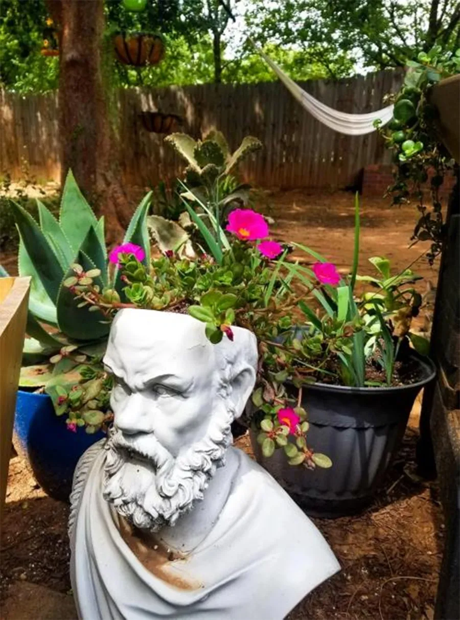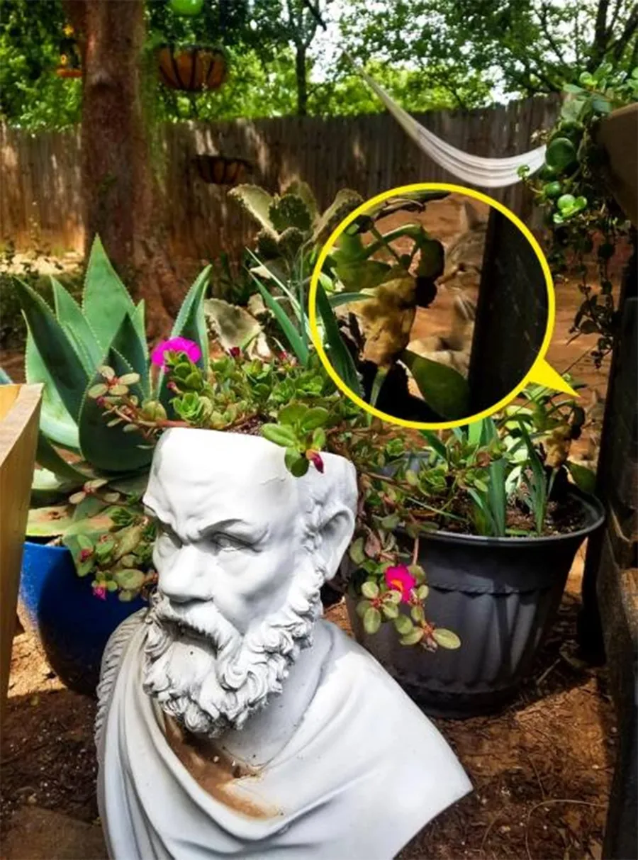În imaginea de mai jos, puteți observa mai multe ghivece de flori, sub diferite forme, într-o curte. La prima vedere, nu pare nimic suspect în fotografie. Totuși, dacă veți privi cu atenție veți putea găsi și o pisică ascunsă.