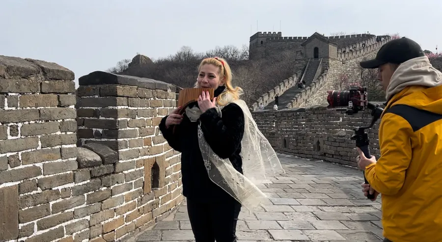 Georgiana Pană a cântat la nai la Marele Zid chinezesc