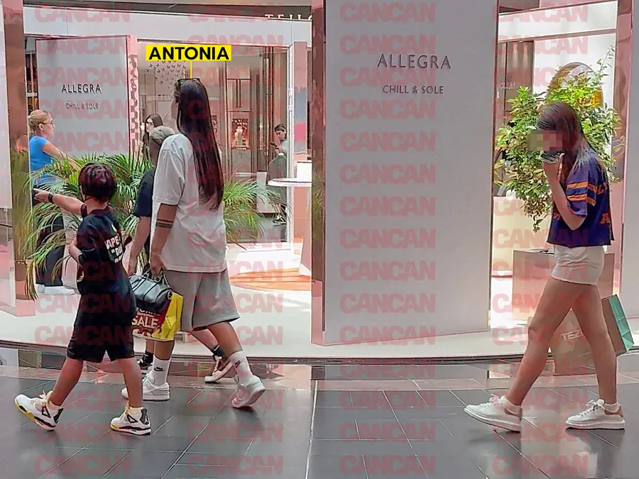 Îmbrăcată super lejer, cu bun tricou alb, pantaloni foarte largi, adidași și șosete lungi, Antonia a fost toată numai un zâmbet alături de cei mici. Asortați, amândoi cu tricouri negre și pantaloni închiși la culoare, Dominic și Akim au fost extrem de energici. La polul opus s-a situat fiica cea mare a Antoniei. Îmbrăcată cu pantaloni scurți, albi și un tricou albastru, frumoasa Maya a fost ceva mai retrasă și a rămas de câteva ori în urma grupului, pentru că stătea pe telefon. Absorbită de mobil, adolescenta a rămas câțiva pași în spatele mamei sale pentru a asculta câteva mesaje vocale.
