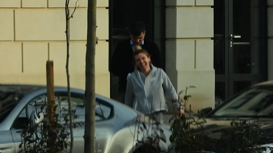 Simona și Toni s-au oprit din hârjoneală pentru scurt timp, atunci când și-au recuperat cheile mașinilor, de la responsabilul cu parcarea. Tenismena pare că se distrează copios atunci când își tachinează iubitul și nu a ratat niciun moment să-și continue ”joaca”. Ba mai mult decât atât, a reușit să-l facă pe Toni să recurgă la un mic „joc de glezne” în fața localului.