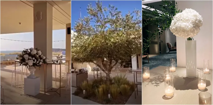 Locația, situată în cea mai scumpă zonă rezidențială din Atena, a fost atent amenajată încă de la primele ore ale zilei de ieri. Buchetele imense de flori albe și galbene, în combinație cu mesele de cocktail rose gold, dau o notă și mai elegantă restaurantului Matsuhisa. Însă atracția principală este, cu siguranță, view-ul impresionant către Golful Saronic.