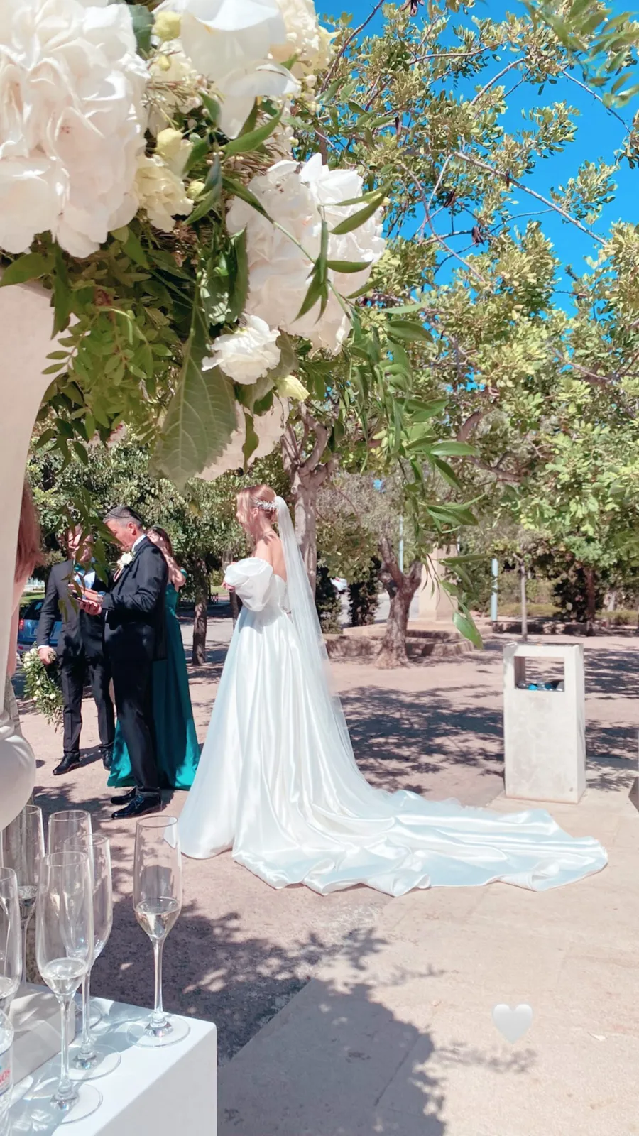 Pentru ziua mult-visată, Sabina Trandafir a optat pentru o rochie de mireasă albă, lungă, cu umerii goi și un decolteu discret. Pe aceeași notă a mers și în ceea ce privește make-up-ul și coafura. În tonuri neutre, care-i pun foarte mult în evidență trăsăturile feței și cu părul prins într-un coc lejer, așa apare în primele imagini viitoarea doamnă Doicescu.