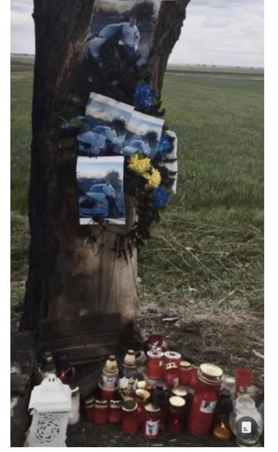 Din cauza sutelor de lumânări care au ars zile întregi, trunchiul copacului a fost cuprins de flăcări, la fel și o coroană cu flori, fotografiile cu Mădălin și o porțiune de pământ: „A luat foc la locul accidentului din cauza lumânărilor”, este mesajul care însoțește imaginile sfâșietoare din locul în care Mădălin și-a pierdut viața.
