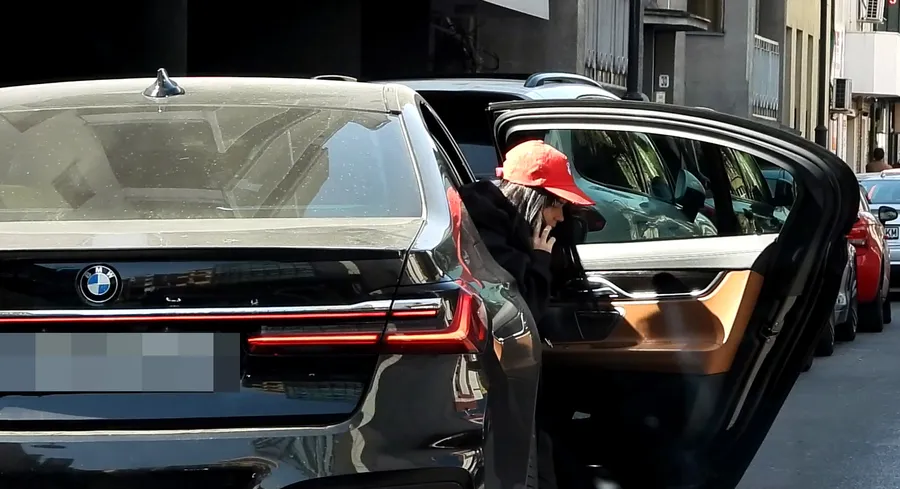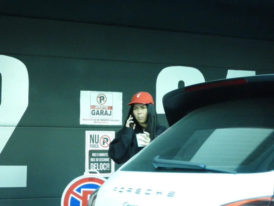 Deschide portiera, coboară, timp în care vorbește la telefon. Nu e machiată, dar maschează acest lucru cu ajutorul unei șepci, trasă bine pe ochi. Artista reușește să evite, astfel, privirile trecătorilor. Lipsită parcă de strălucire, dar și încercănată, Inna petrece câteva minute, în dreptul mașinii, cu telefonul la ureche.