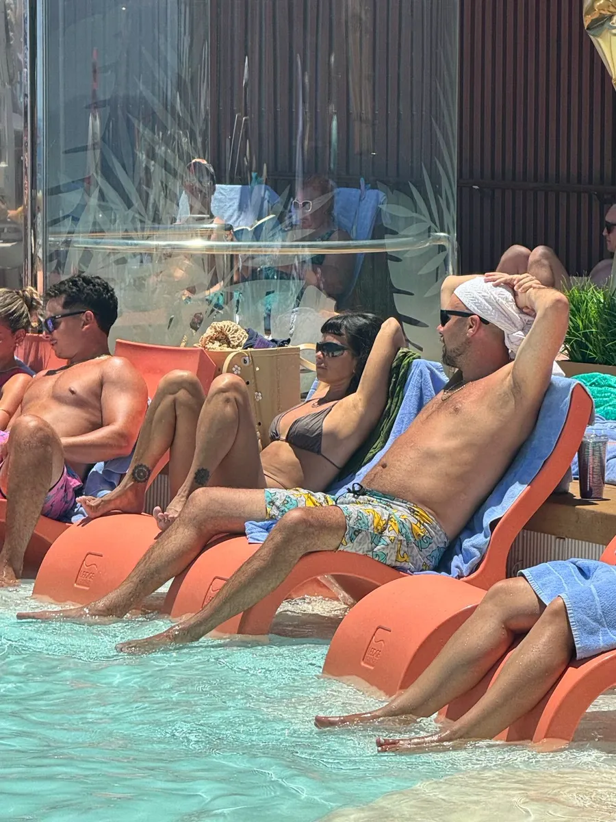 În imaginile surprinse, artiștii se relaxează de zor pe sezlonguri. La mare, la soare, Inna și Deliric par că se simt extrem de bine unul în compania celuilalt. În timp ce cântăreața a optat pentru un costum de baie din două piese, închis la culoare, rapper-ul a ales un short ceva mai colorat și… un prosop pe cap, semn că Deli știe cât de periculoasă este insolația, așa că vrea să se protejeze cu orice preț.