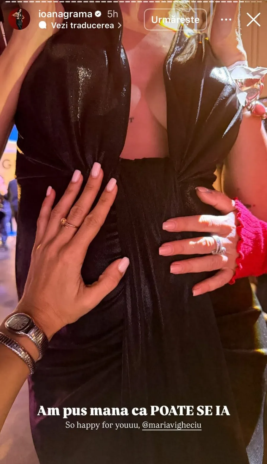 Recent, Ioana Grama a fost la un eveniment unde a fost prezentă și prietena Maria Vigheciu, care a anunțat de curând că este însărcinată. Gestul Ioanei de a-și așeza mâna pe burtica Mariei a atras atenția fanilor, fiind interpretat într-un mod ludic și simbolic, conform unor superstiții populare legate de fertilitate și noroc. Această scenă a fost primită cu entuziasm.