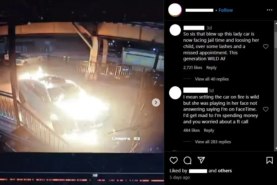 Autoturismul femeii ar fi fost incendiat de o clientă supărată că nu a fost primită la programarea pentru gene / sursă foto: Instagram