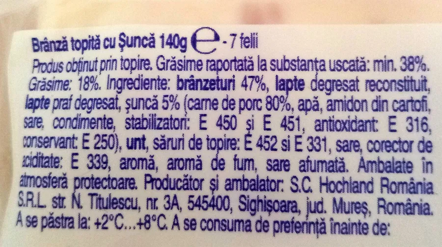Ingredientele care apar pe pachetul cu brânză topită Hochland