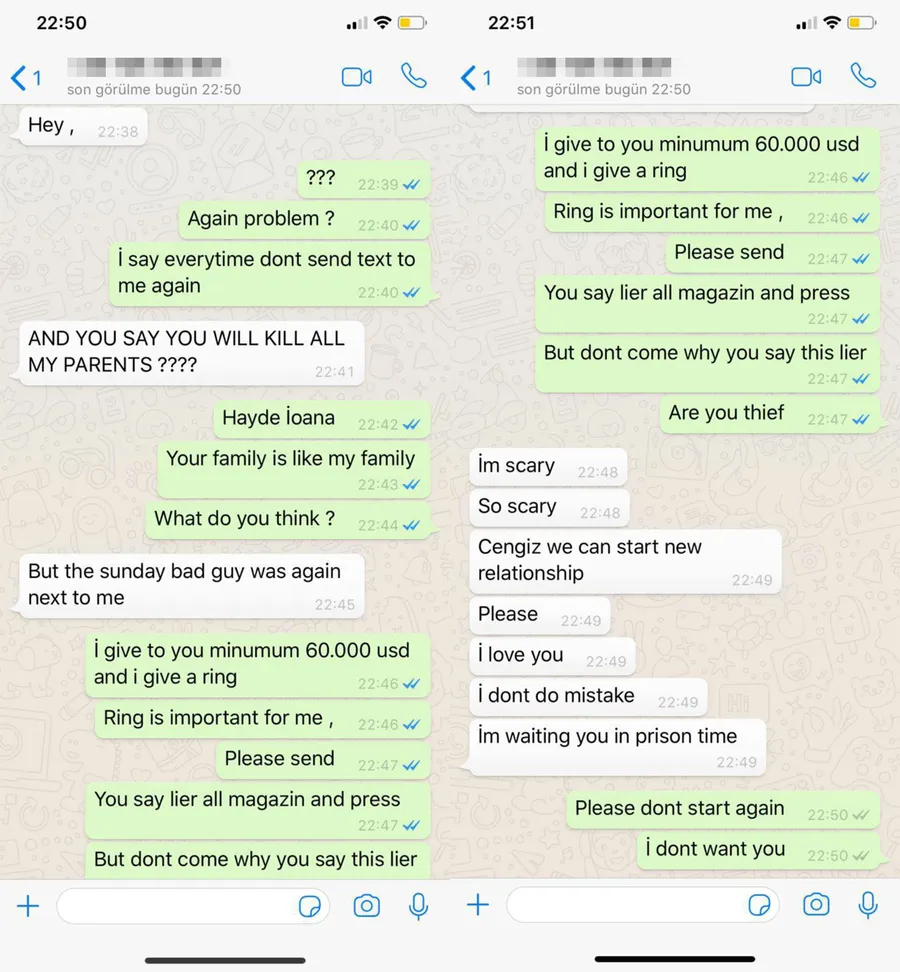 ”Mi-a lua banii, dar și un inel extrem de scump. Am discutat cu ea în urmă cu câteva săptămâni și i-am cerut să îmi înapoieze inelul. Am plătit pe el 27.000 de dolari și este un obiect special pentru mine. Banii nu mă interesează, i-am zis acest lucru și Ioanei. Am tratat-o ca pe o prințesă, am iubit-o, dar gata, vreau să pun punct relației. Ioana e o mare mincinoasă”, a declarat Cengiz Şıklaroğlu, în exclusivitate, pentru CANCAN.RO, SITE-UL NR.1 DIN ROMÂNIA.