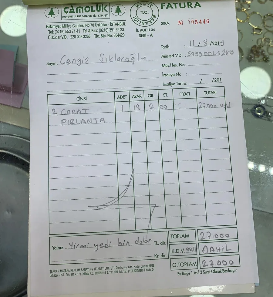 Mai mult decât atât, afaceristul turc a pus la dispoziția reporterilor D.A.S. factura bijuteriei, care atestă că prețiosul inel a costat 27.000 de dolari, o sumă la care mulți dintre români doar visează. (CITEȘTE ȘI: SOȚIA L-A FĂCUT PRAF LA DIVORȚ PE CELEBRUL FOTBALIST DIN ”GENERAȚIA DE AUR”)