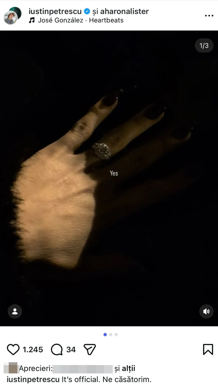 Iubita lui Iustin Petrescu, Hara, a spus „DA”- sursa- social media