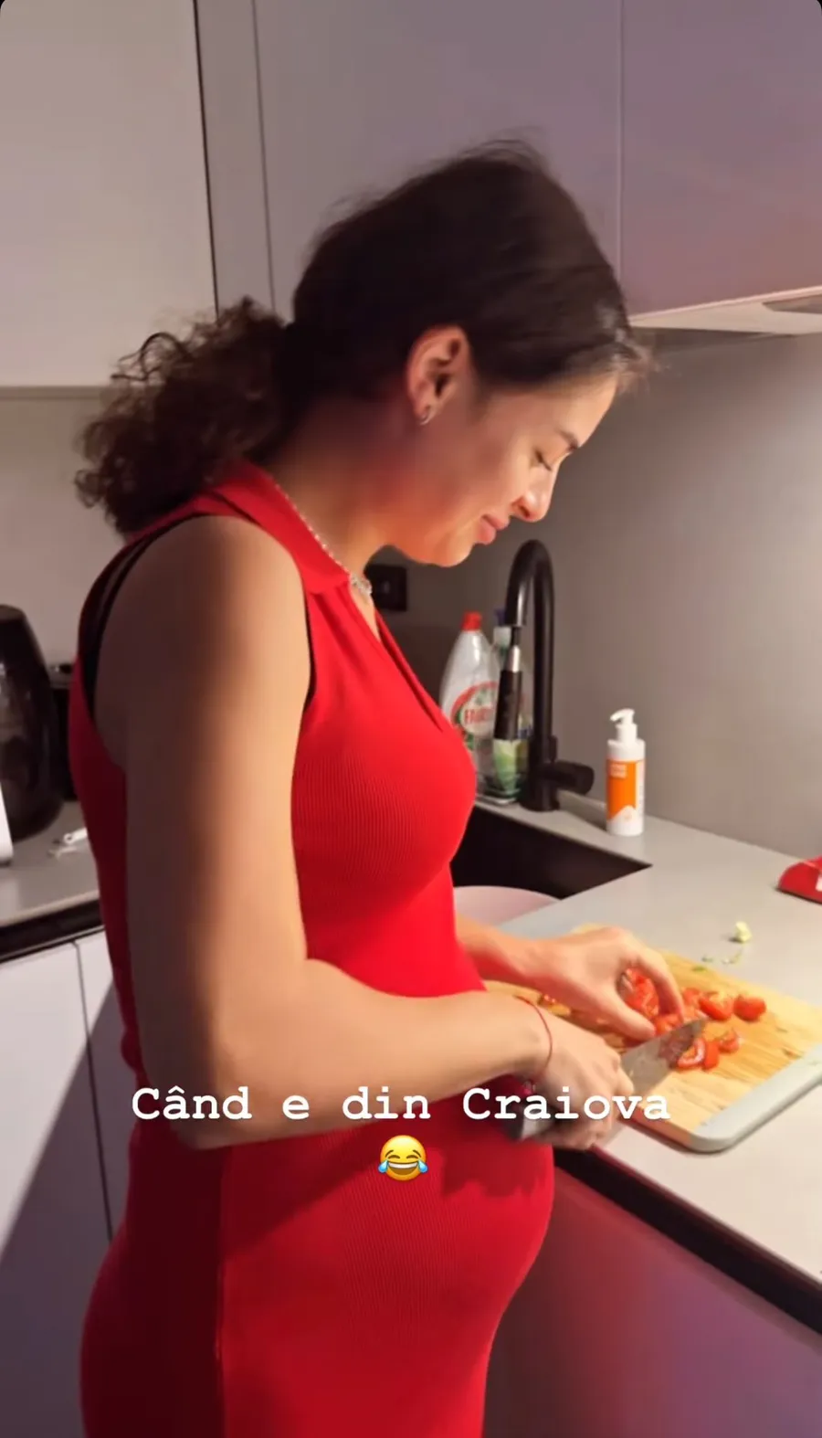 Oana Ciocan purta o rochie roșie care îi punea în evidență burtica de gravidă. Jador nu s-a putut abține și a făcut o glumă pe baza faptului că soția lui tăia roșii cu un cuțit, spunând că „are un sertar plin de cuțite” cu care îl „amenință de obicei”.
