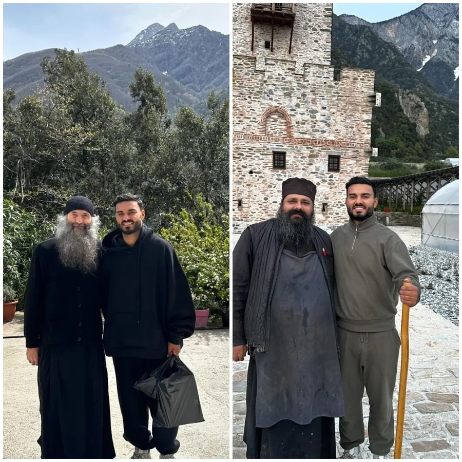 Mai mult, artistul a împărtășit și câteva fotografii în care apare alături de preoții de pe Munte, pe care le-a însoțit de un mesaj ce i-a mișcat pe fanii săi.