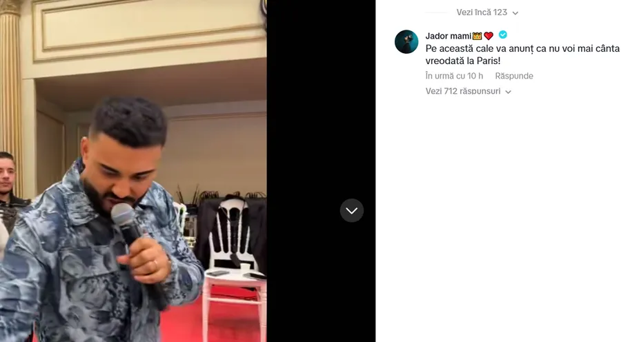 „Pe această cale va anunț ca nu voi mai cânta vreodată la Paris!”, este comentariul lăsat de Jador la postarea de pe TikTok.
