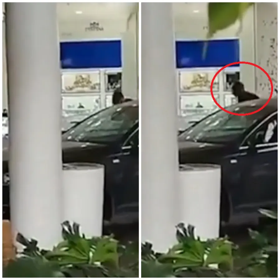 Așa cum spuneam, un jaf ca în filme a avut loc într-un mall din Madrid. Conform imaginilor surprinse de camerele de supraveghere, hoții au intrat cu mașina prin uşa de sticlă a mall-ului și au acționat rapid. În imagine se vede cum unul dintre hoți iese din mașină cu un ciocan, pe care îl folosește să spargă geamul bijuteriei. Mai apoi începe să adune obiectele de valoare.