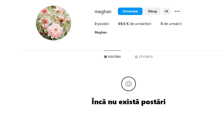 Contul de Instagram care se presupune că ar fi a lui Meghan