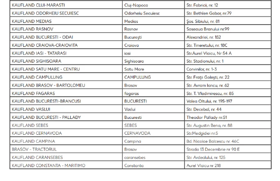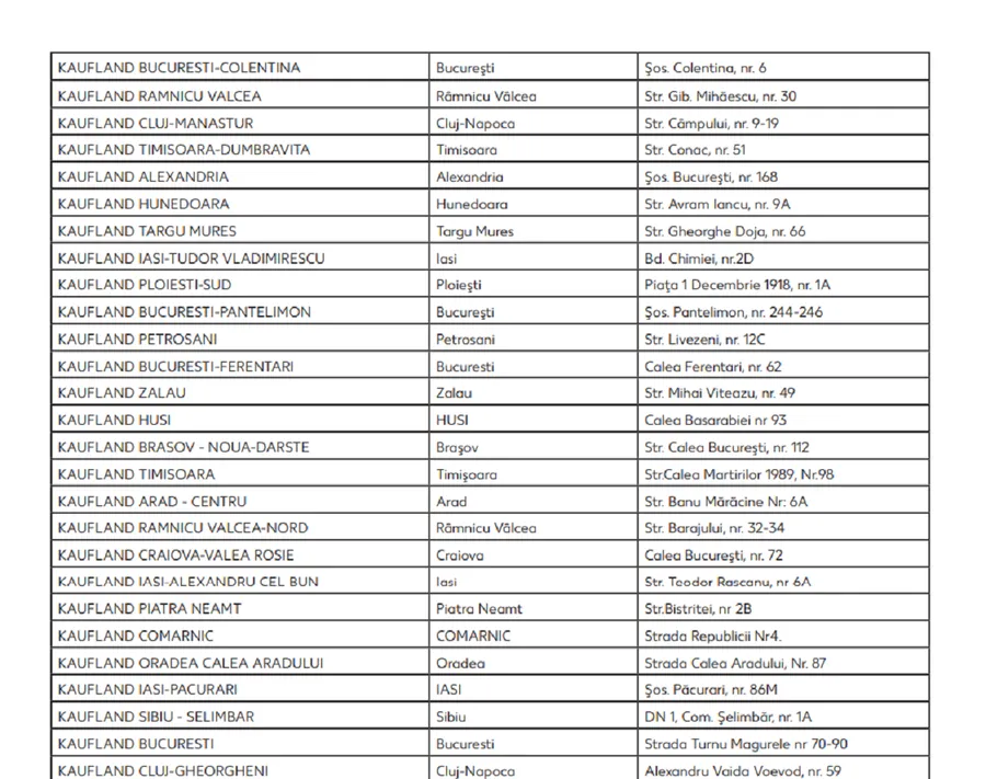 Lista magazinelor Kaufland vizate