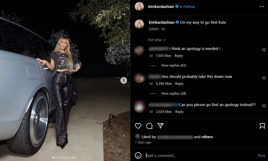 Mesajul respectiv, însă, a fost de ajuns să creeze un val de reacții la adresa ei. Mulți utilizatori i-au cerut lui Kardashian să își ceară iertare în fața Prințesei de Wales pentru cuvintele scrise. Alții i-au transmis mesaje dure și o îndeamnă să șteargă postarea. Acum, postarea fostei partenere a lui Kanye West s-a viralizat și mesajele curg neîncetat.