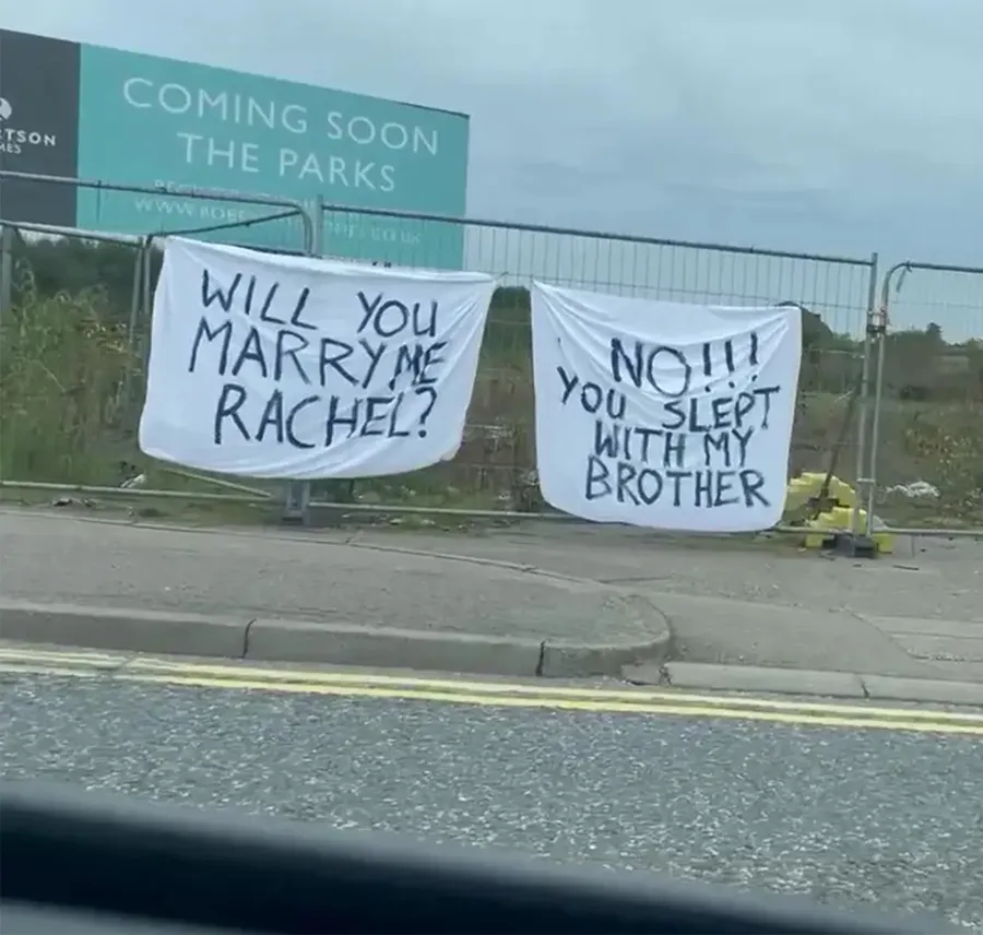 „Nu!!! Te-ai culcat cu fratele meu”, este mesajul scris drept răspuns pentru cererea în căsătorie.
