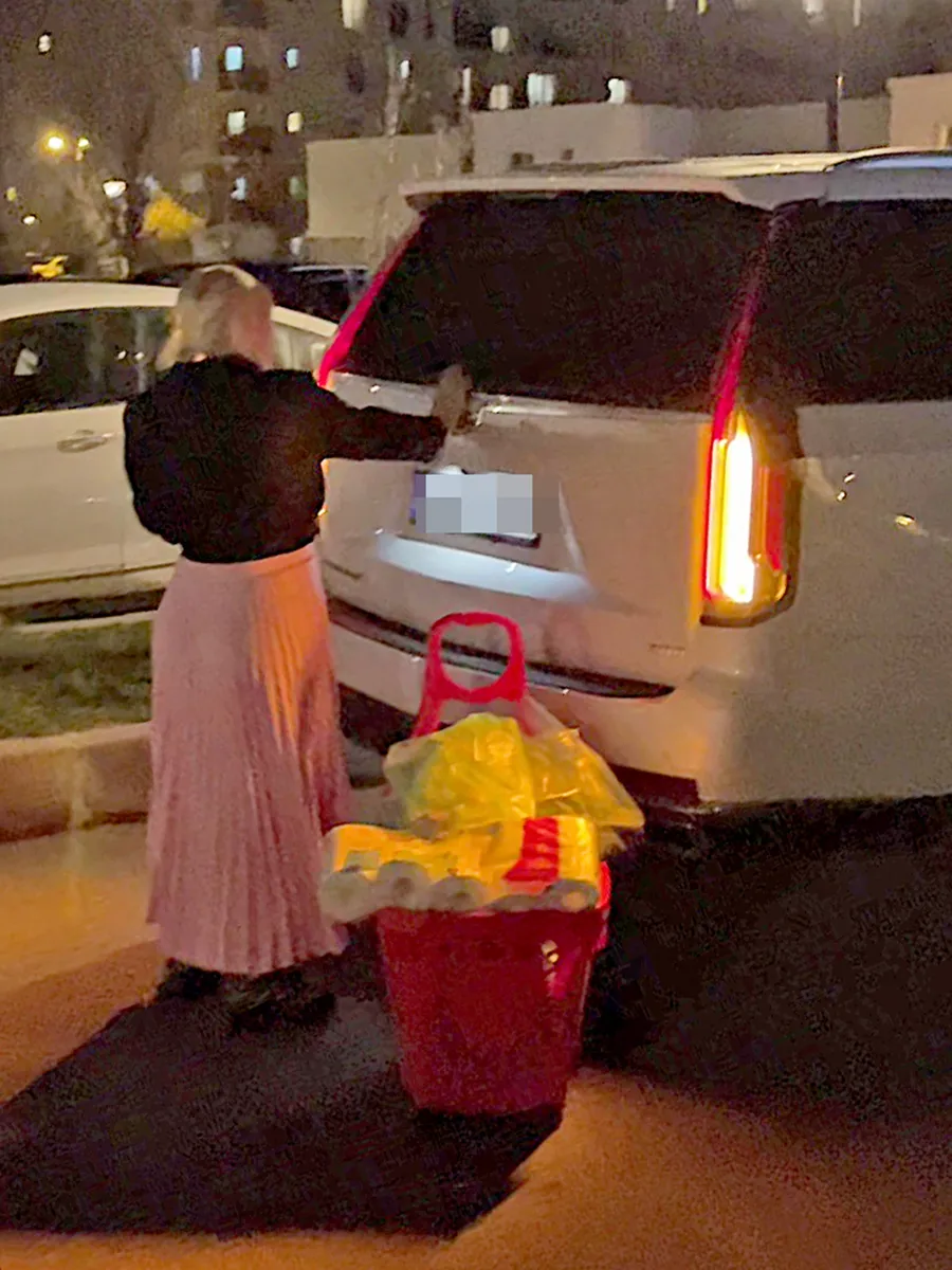 Lambada a încercat minute în șir să deschidă portbagajul mașinii lui Tzancă, pentru a introduce cumpărăturile în bolid (Foto: CANCAN.RO)