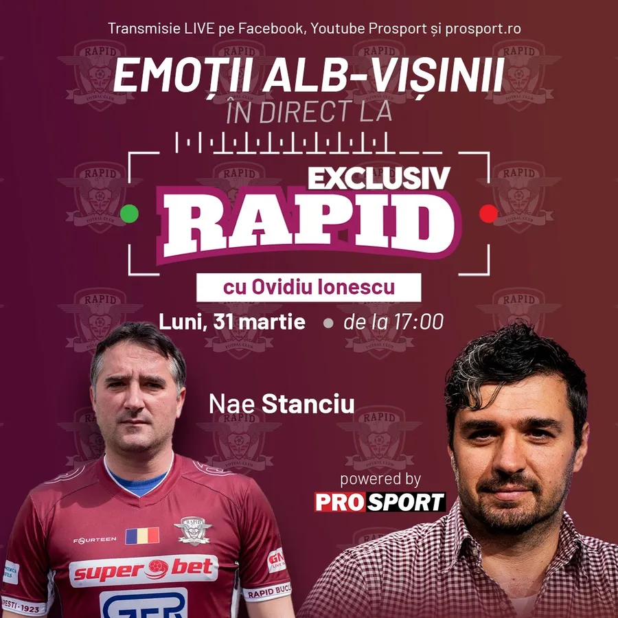 Legendarul Nae Stanciu este invitatul special de astăzi la „EXCLUSIV RAPID”. Intrăm în direct cu voi de la ora 17:00 pe YouTube – ProSport